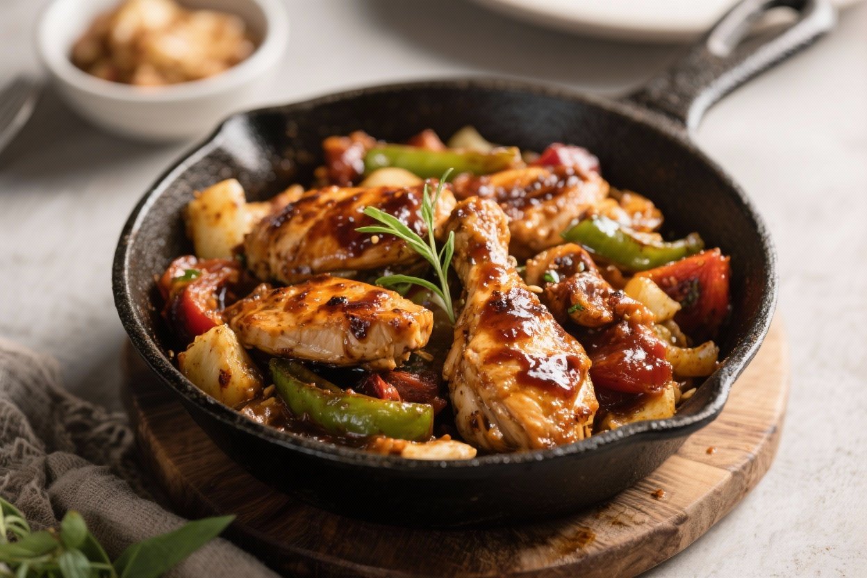 This skillet keeps things simple but big on flavor. The chicken is seared for a golden crust, then simmered in a low-sugar BBQ sauce that thickens into a glossy glaze.