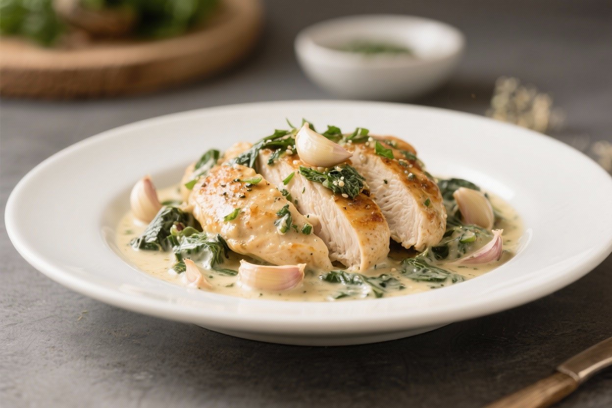 This is the kind of dinner you look forward to all day. Tender chicken, a silky garlic-parmesan sauce, and pops of sun-dried tomato and spinach make every bite rich and satisfying. It’s simple enough for a weeknight, yet special enough for guests.